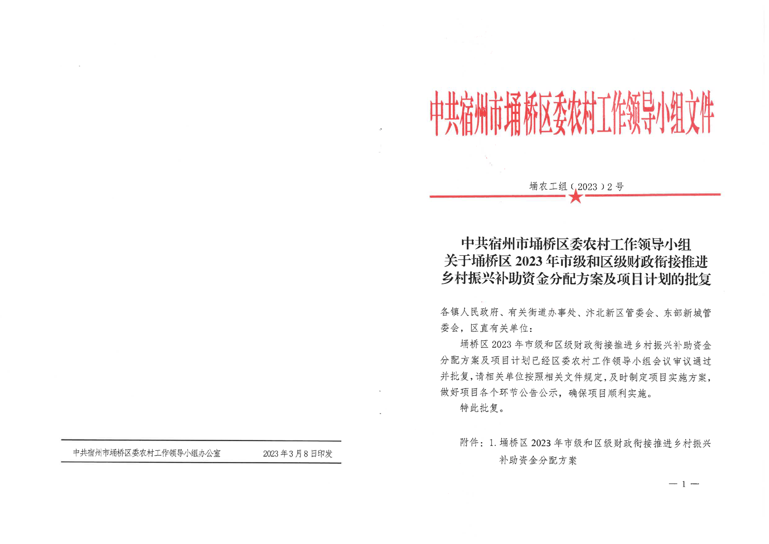 【项目计划】关于埇桥区2023年市级和区级财政衔接推进乡村振兴补助资金项目计划的公告