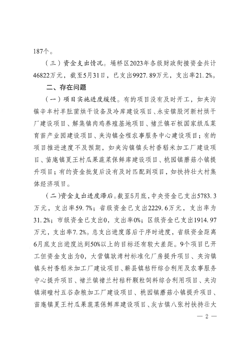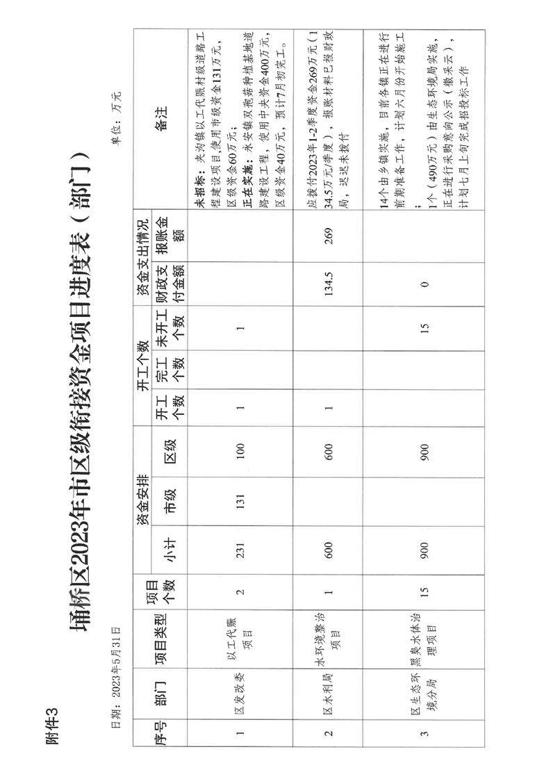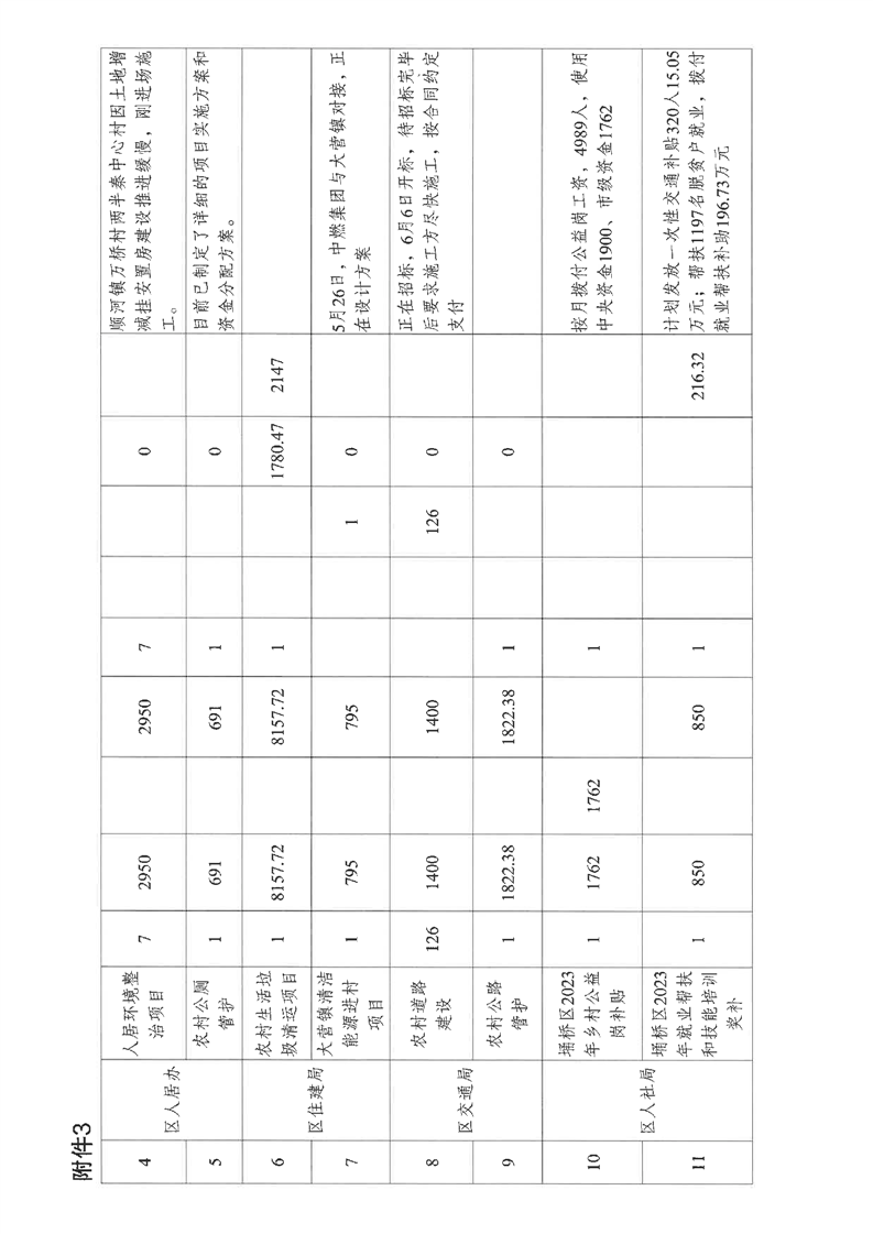 【项目计划完成情况】区巩固拓展脱贫攻坚成果专项小组办公室关于2023年财政衔接推进乡村振兴补助资金项目实施情况的通报