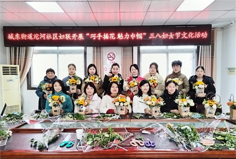在“三八”国际劳动妇女节即将来临之际,为丰富辖区妇女同胞的业余文化生活,营造浓厚节日氛围,近日,城东街道沱河社区开展“三八妇女节”插花活动。