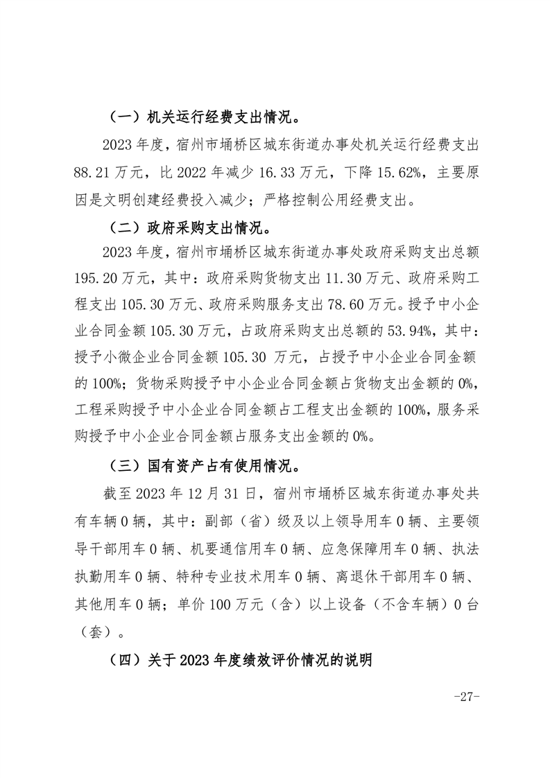 宿州市埇桥区城东街道办事处2023年度部门决算