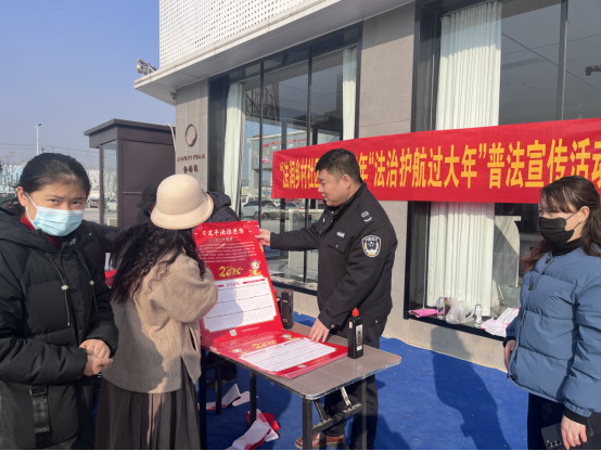 在活动地点设置咨询点,法律志愿者发放法律宣传手册,涵盖春节期间消费维权、交通安全、烟花爆竹管理等方面法律知识,同时为大家现场解答法律疑问。