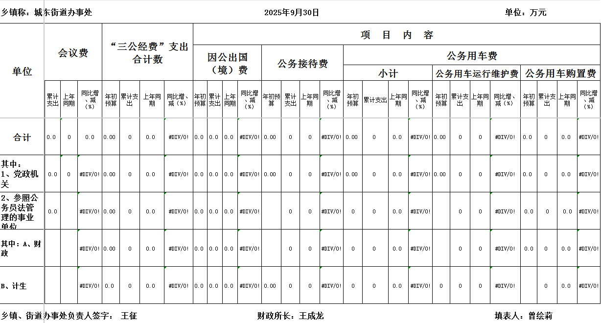 城东街道2025年9月“三公”经费全口径支出情况统计表