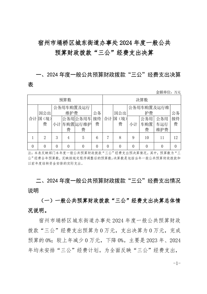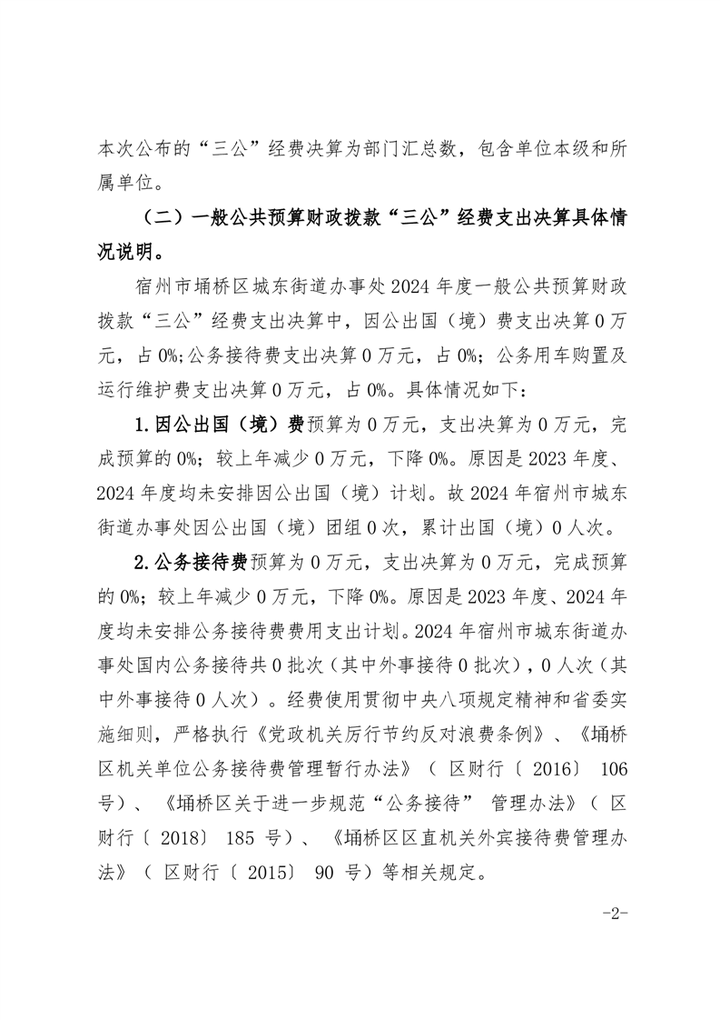 城东街道办事处2024年度一般公共预算财政拨款“三公”经费支出决算