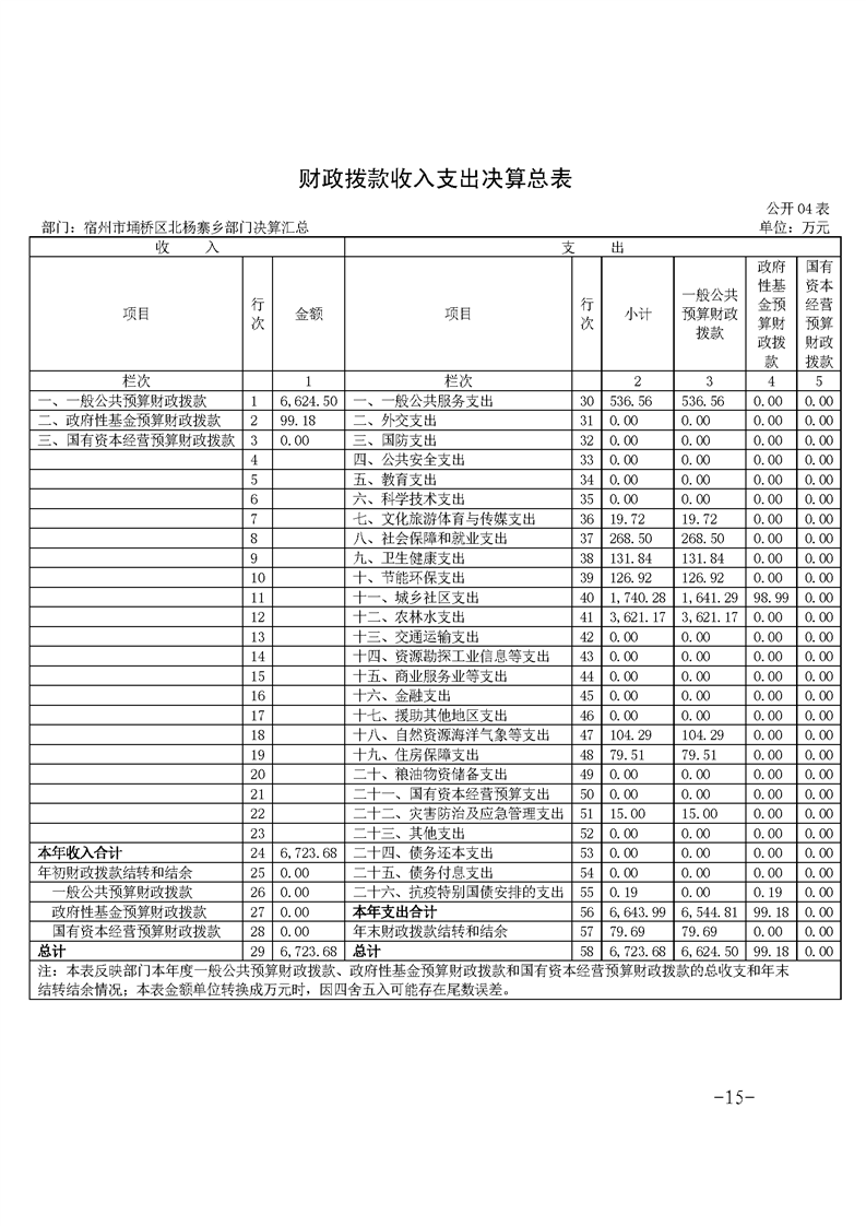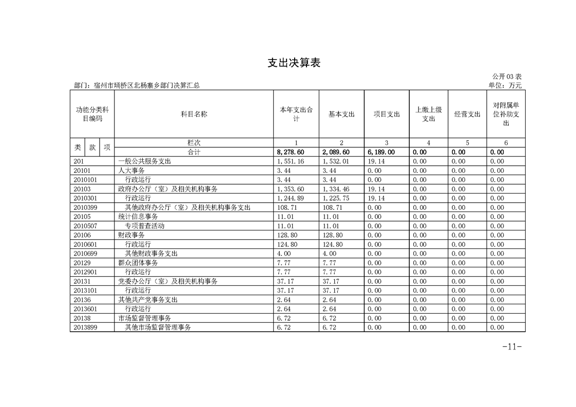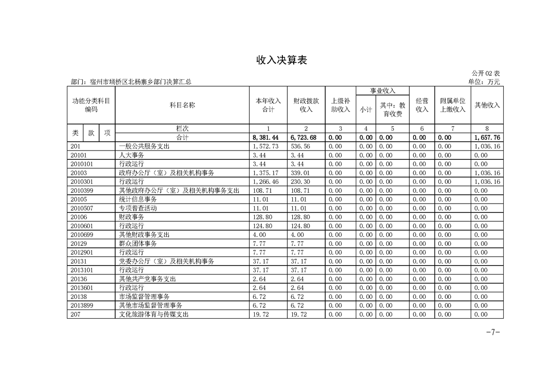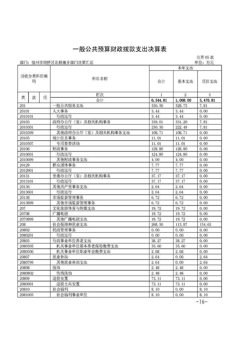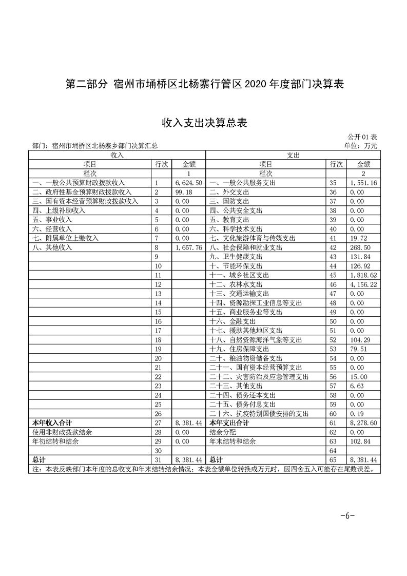宿州市埇桥区北杨寨行管区2020年度部门决算