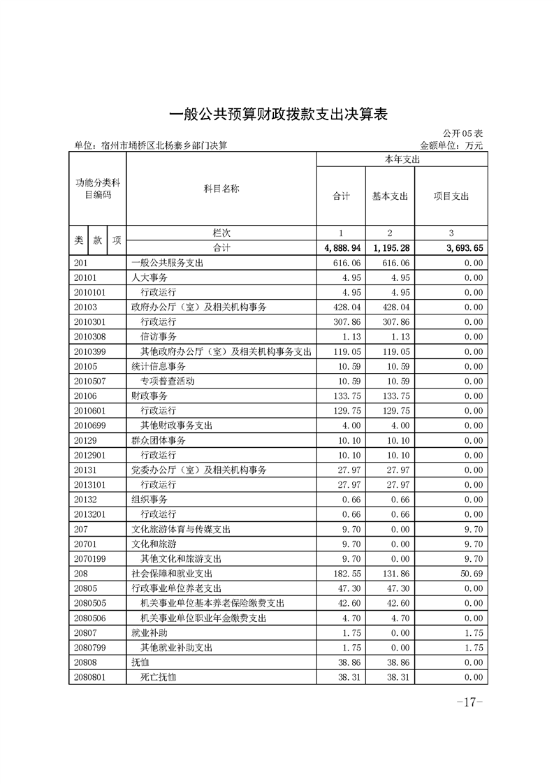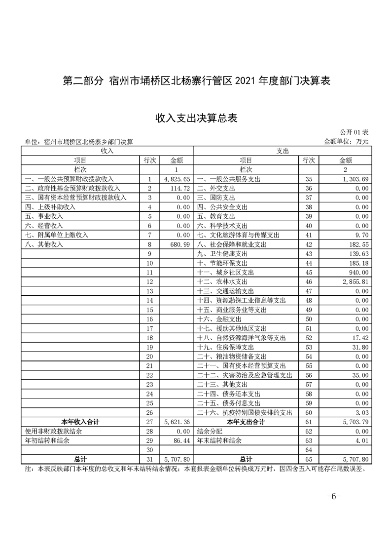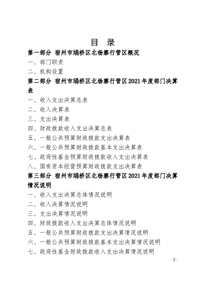 宿州市埇桥区北杨寨行管区2021年度部门决算