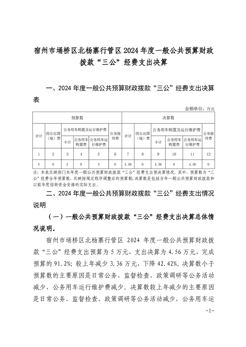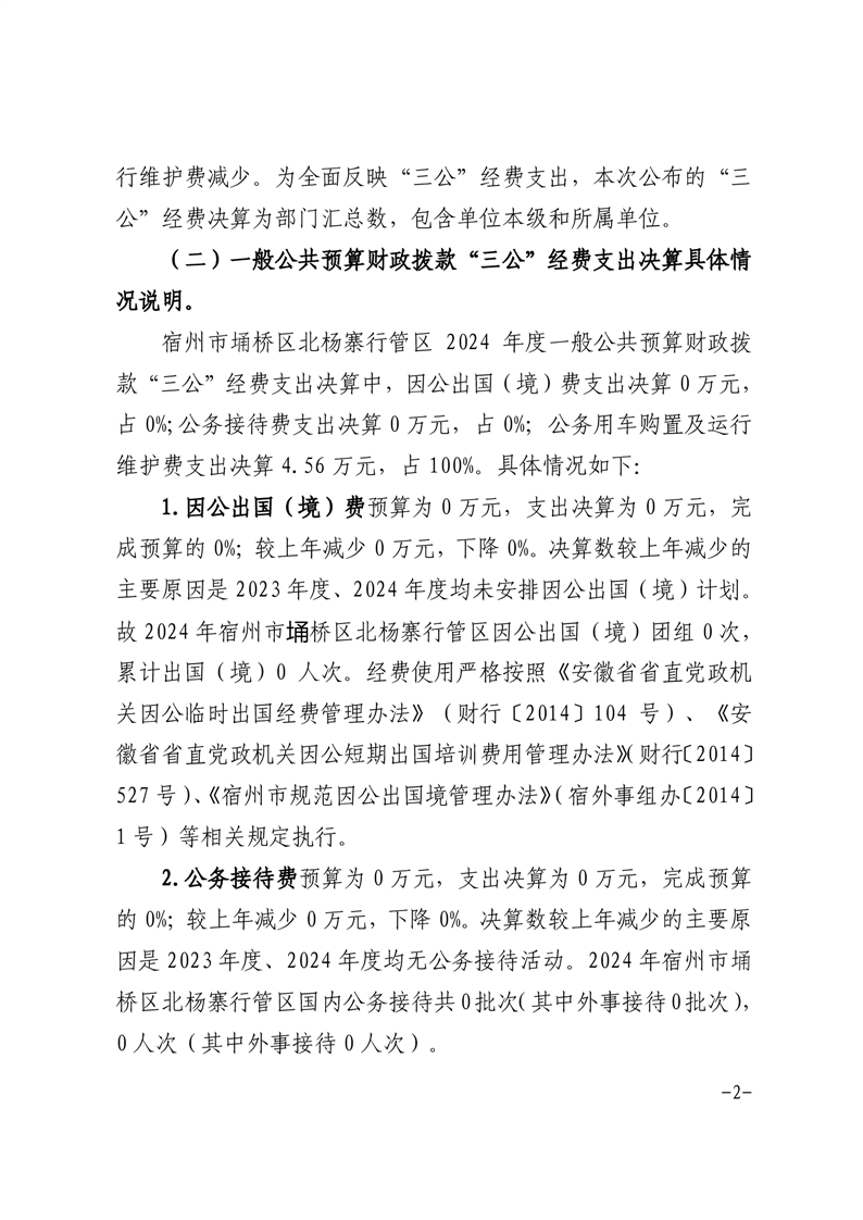 宿州市埇桥区北杨寨行管区2024年度一般公共预算财政拨款“三公”经费支出决算