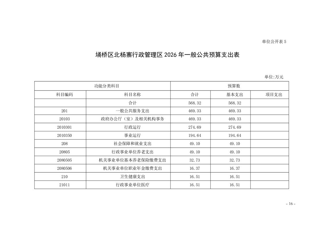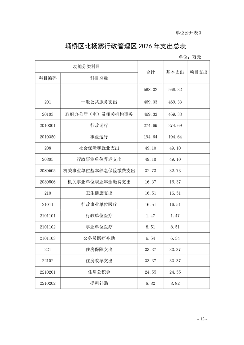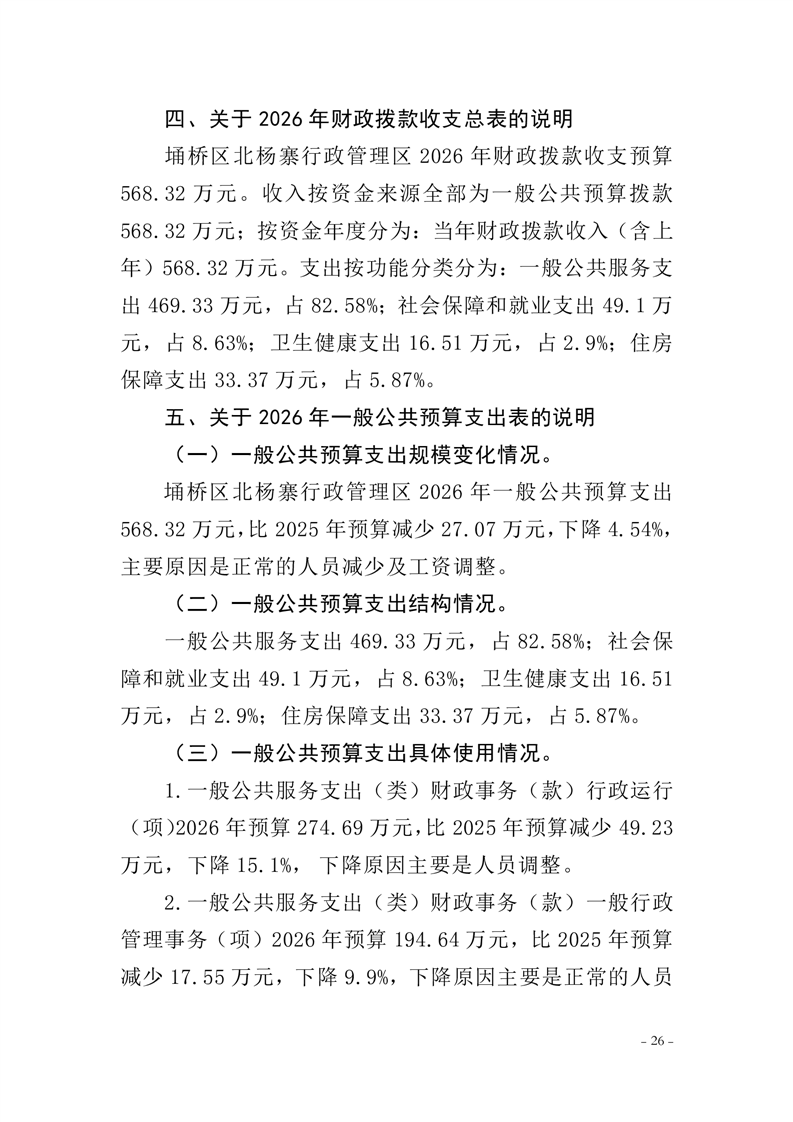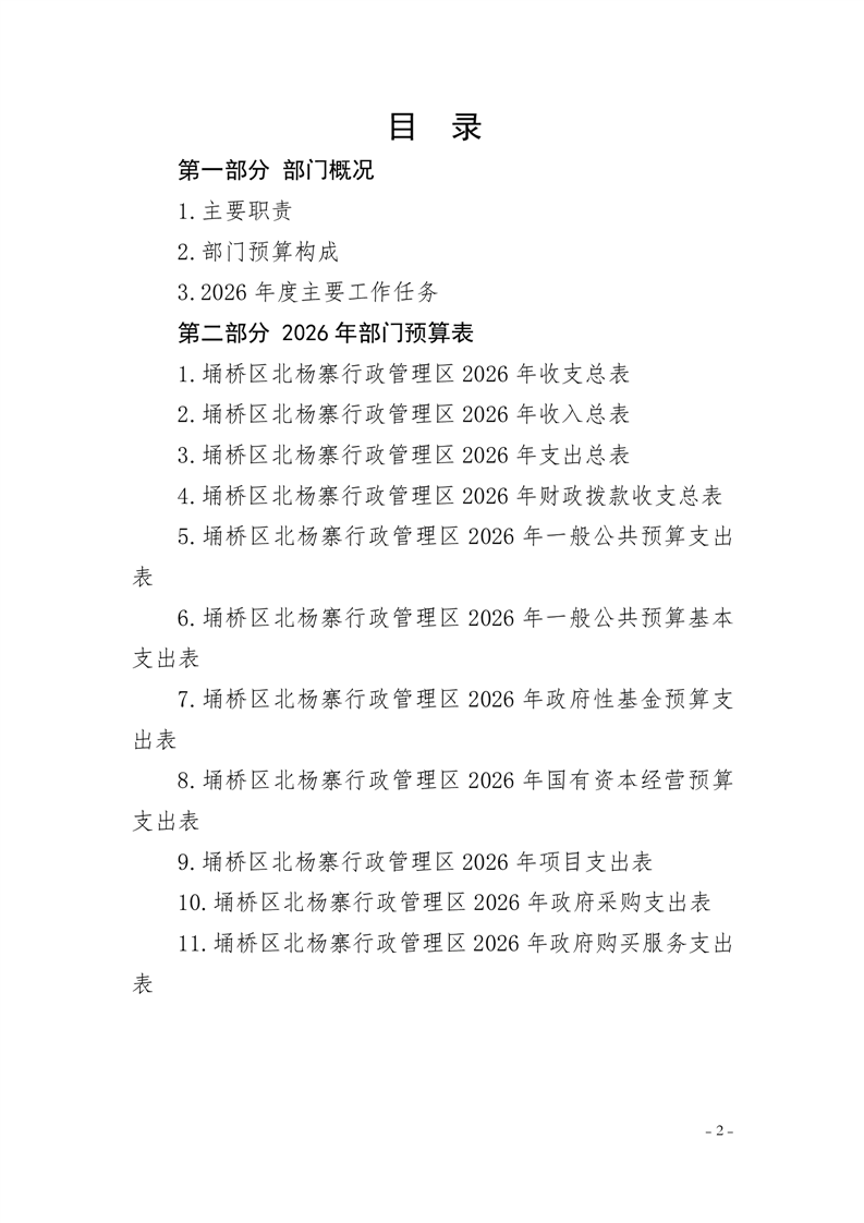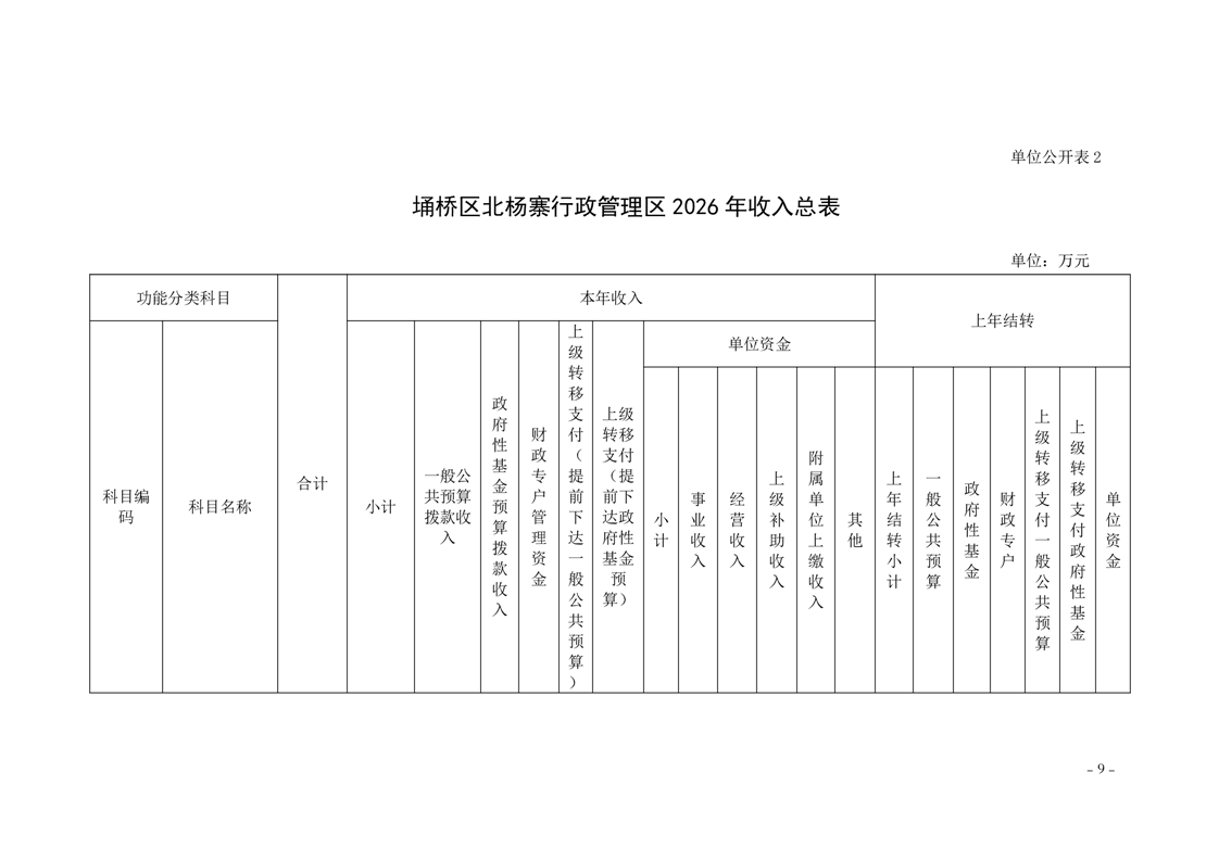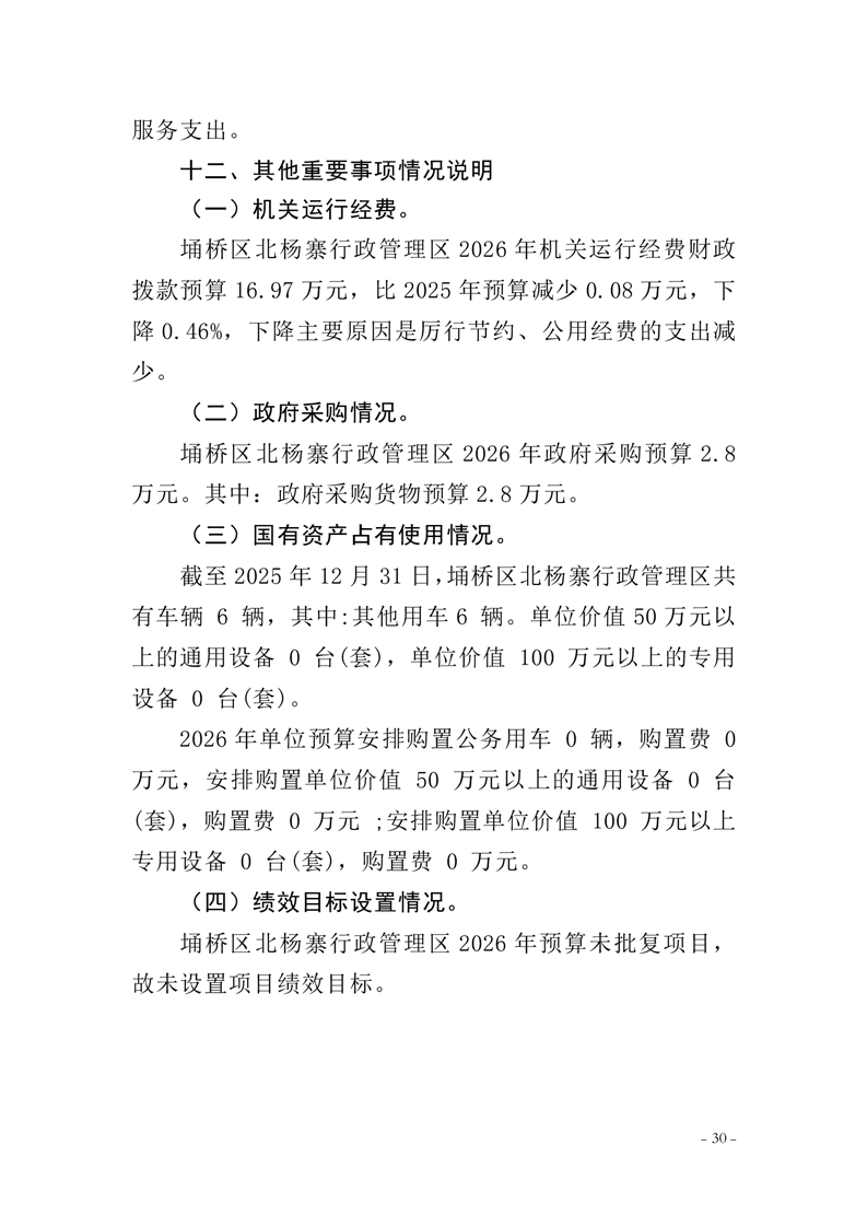 北杨寨行政管理区工作委员会2026年预算公开