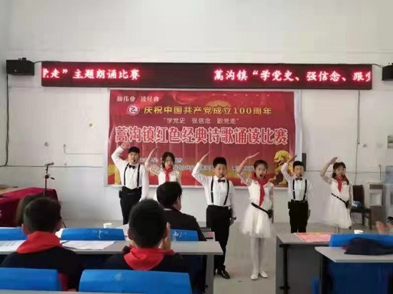 为庆祝中国共产党成立100周年,引导广大青少年传承爱国主义革命精神,4月29日,安徽省宿州市埇桥区蒿沟镇举行“红色经典诗歌朗诵”比赛活动。来自全镇中小学的30多名选手参加了激烈的角逐。