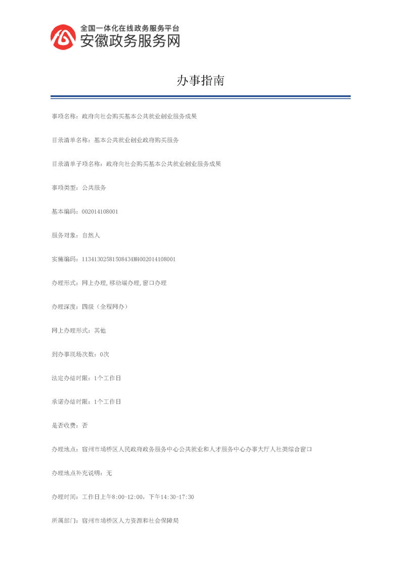 基本公共就业创业政府购买服务(政府向社会购买基本公共就业创业服务成果)