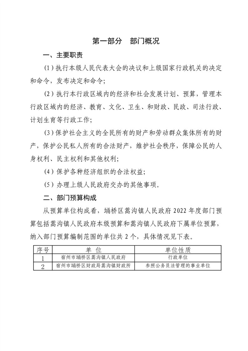 埇桥区蒿沟镇人民政府2022年预算公开说明