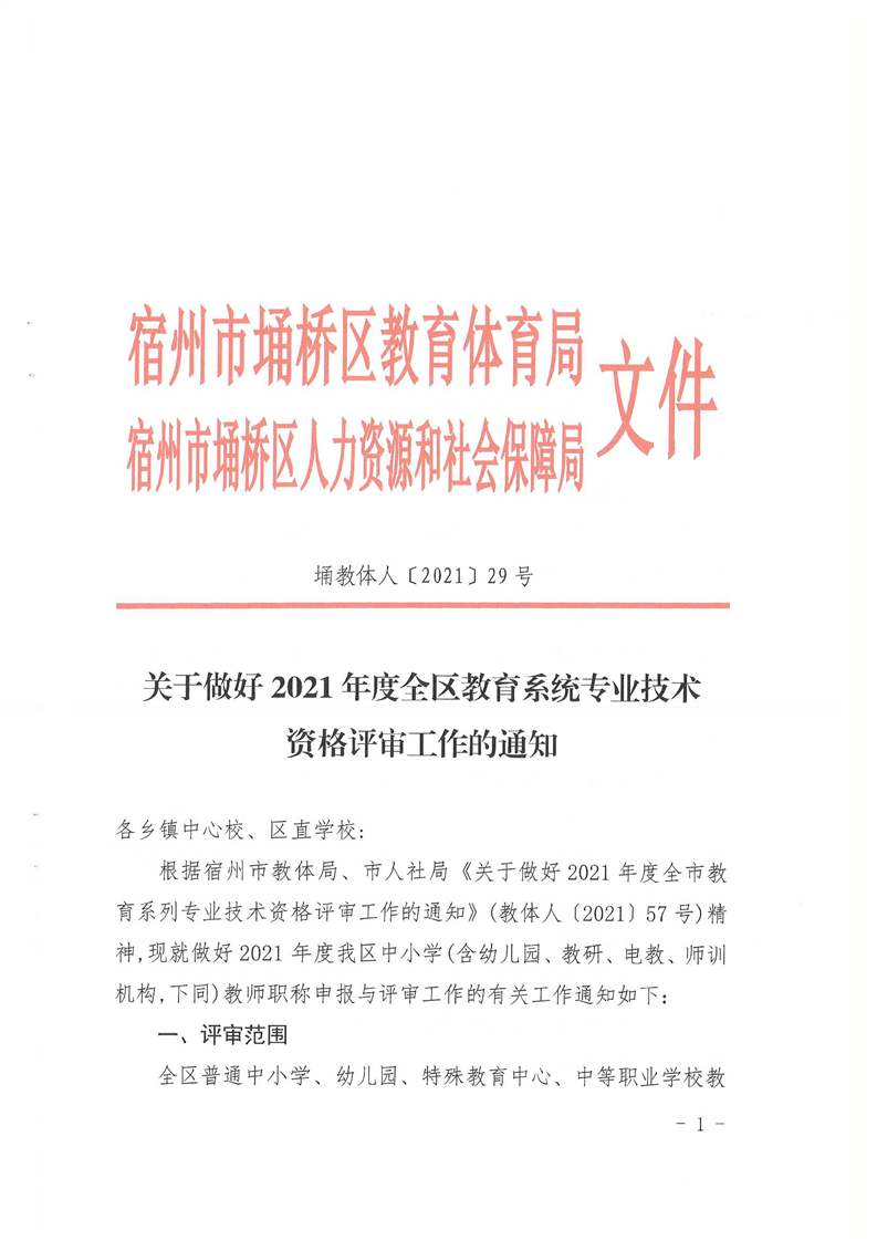 关于做好2021年度全区教育系统专业技术资格评审工作的通知(埇教体人〔2021〕29号)