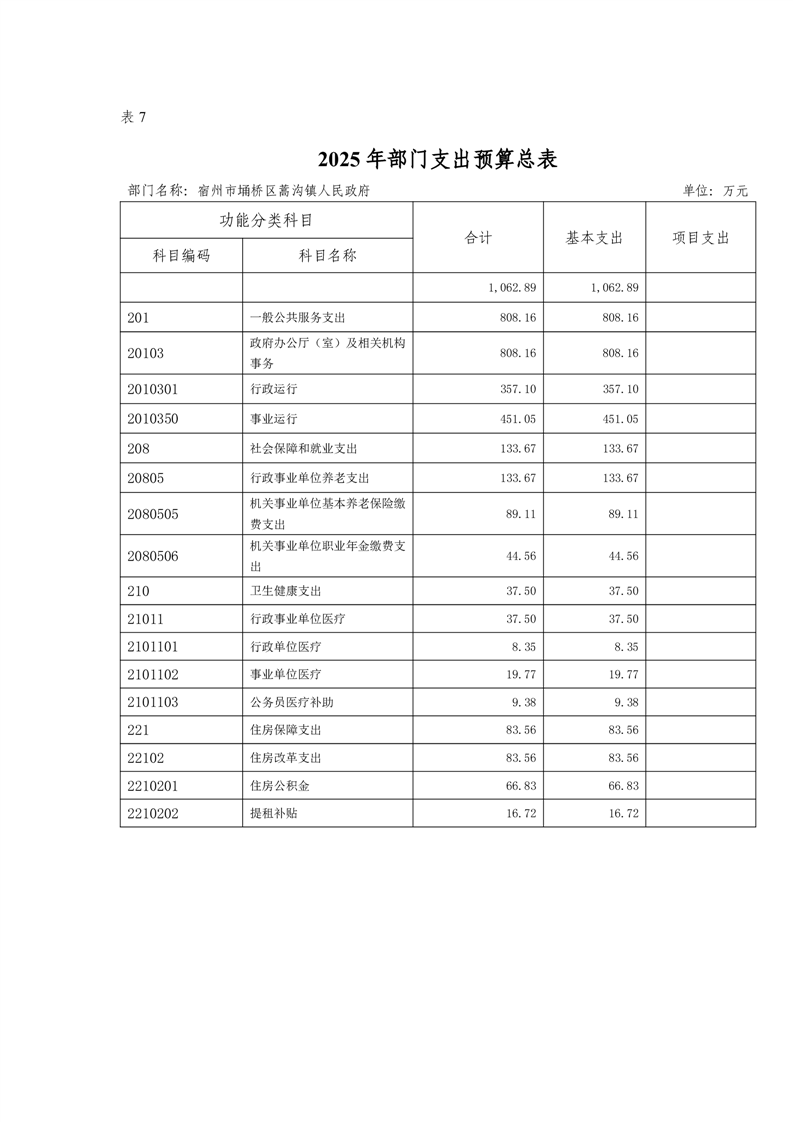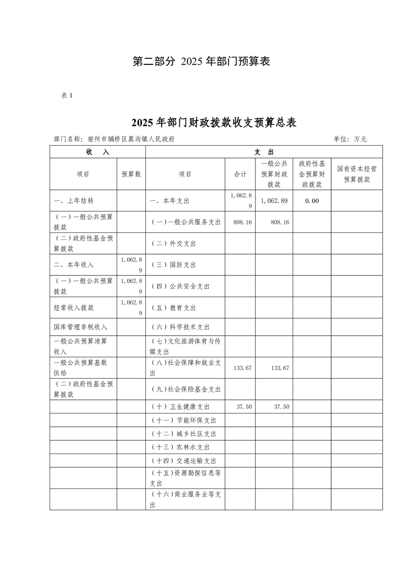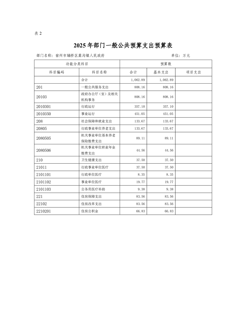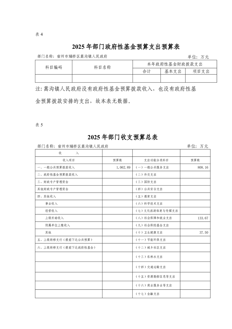 埇桥区蒿沟镇人民政府2025年部门预算