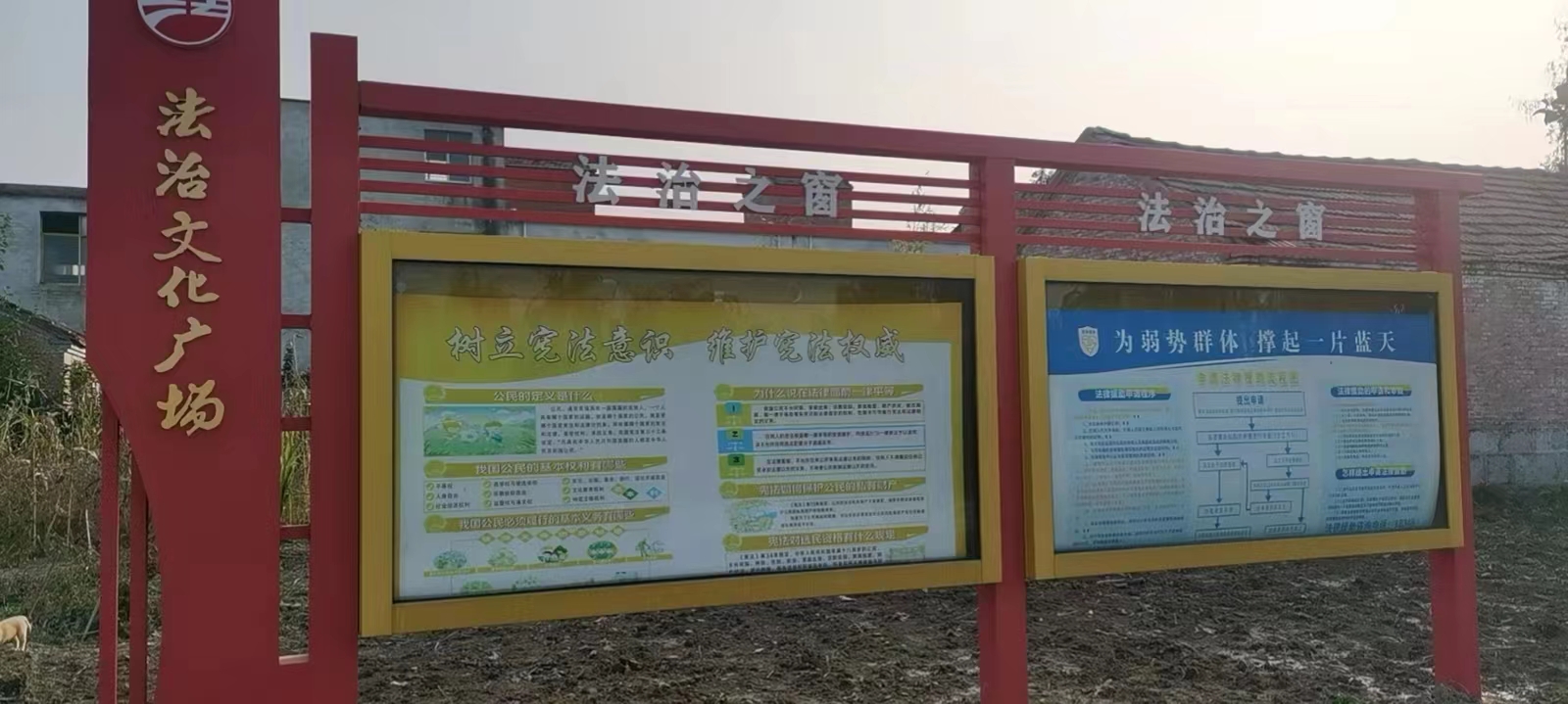 苗庵镇夏王村法治文化广场为室外集中区域建设,占地面积约1000平方米左右,在广场入口设有法治文化广场标志,广场建有法治宣传栏4个,草坪牌17个,法治铁艺标牌7个,电子屏1个,宣传内容包括宪法、法治典故、法治格言警句等。