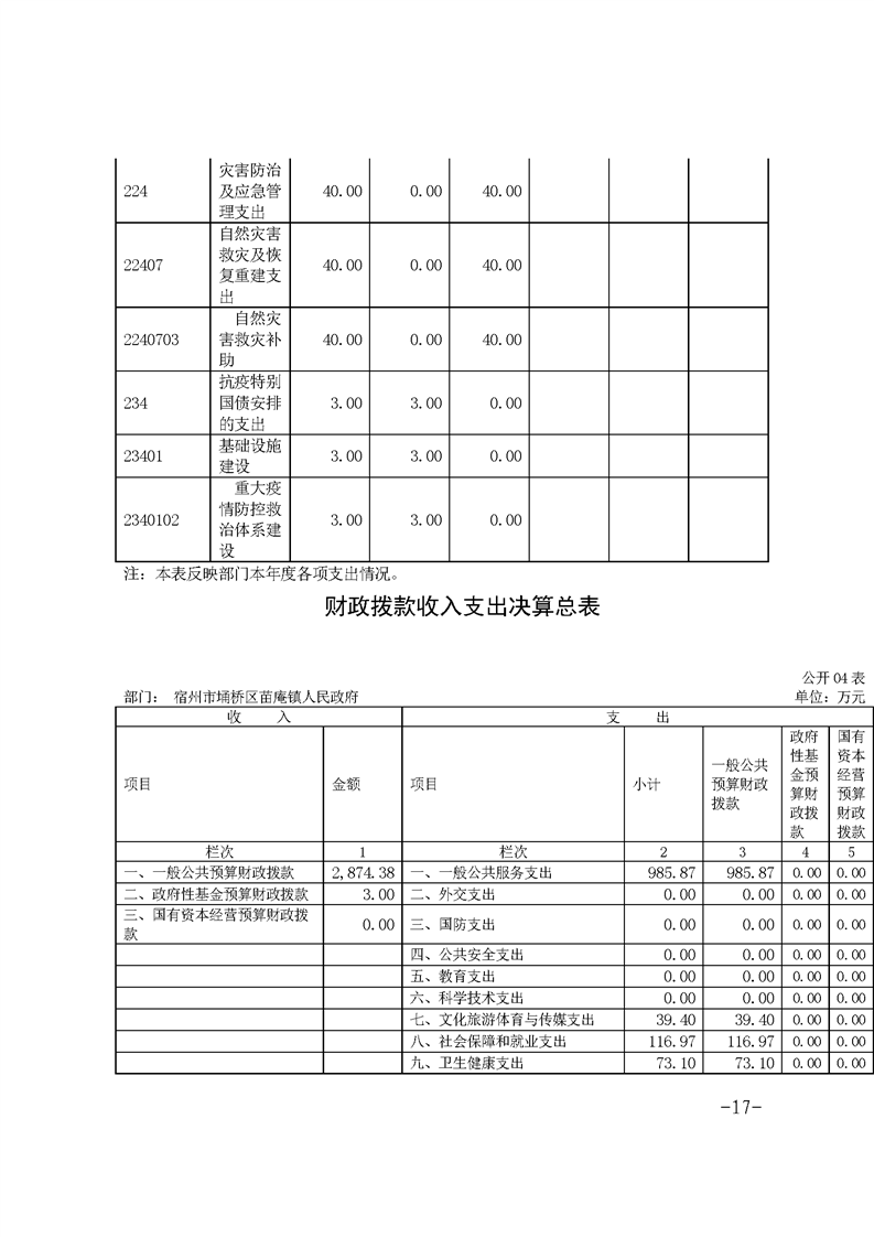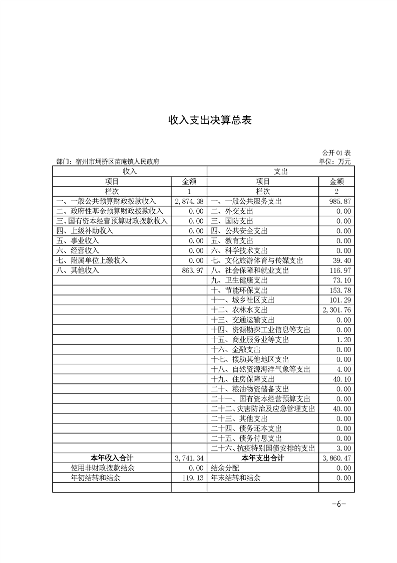 宿州市埇桥区苗庵镇人民政府2021年度部门决算