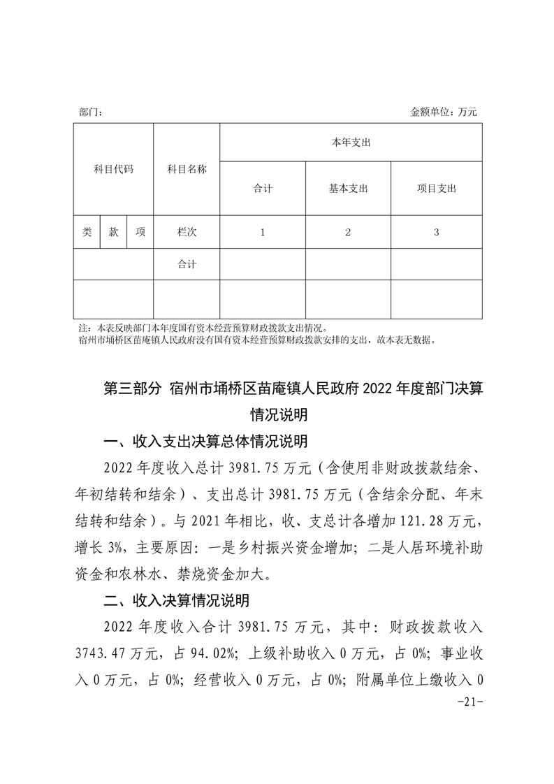 宿州市埇桥区苗庵镇人民政府2022年度部门决算