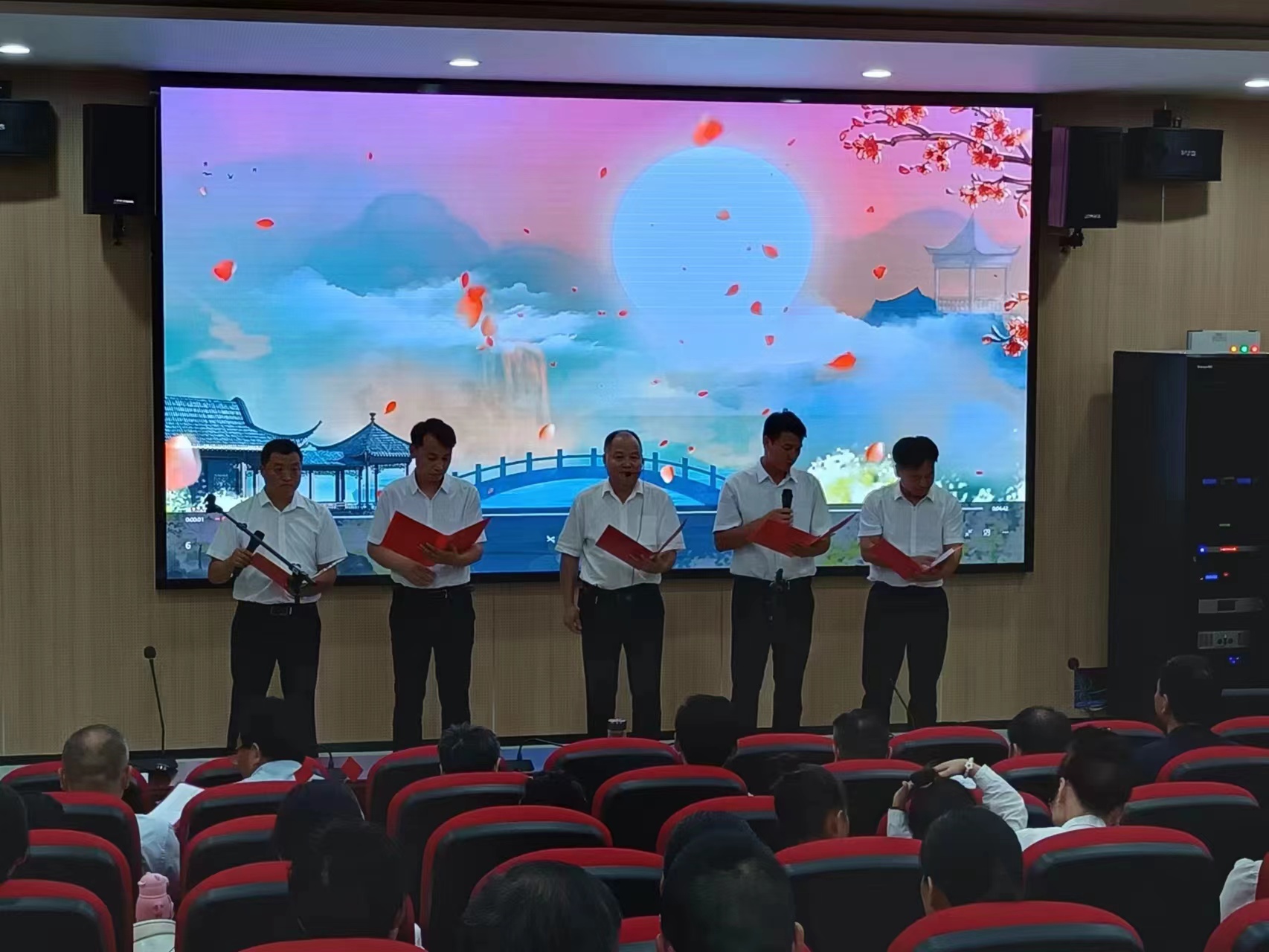 在国庆、中秋双节到来之际,为弘扬中华传统文化,展现新时代教师健康向上的精神风貌,9月27日下午,苗庵镇中心学校隆重举行“月满华诞、情满双节” 迎中秋、庆国庆诗歌朗诵比赛活动。比赛现场,选手们或抒情朗诵,或激昂高歌,抑扬顿挫、用真诚、挚爱和激情,精彩演绎了每一首诗歌的深刻内涵,尽情抒发了喜迎中秋、欢度国庆的喜悦心情和对对祖国的深情厚爱、对美好生活的无限感恩。整场活动高潮迭起、异彩纷呈。使在场的师生们感受到浓浓的家国情怀、享受了一场高雅的视听文化盛宴、受到了一次心灵的震撼和洗礼。