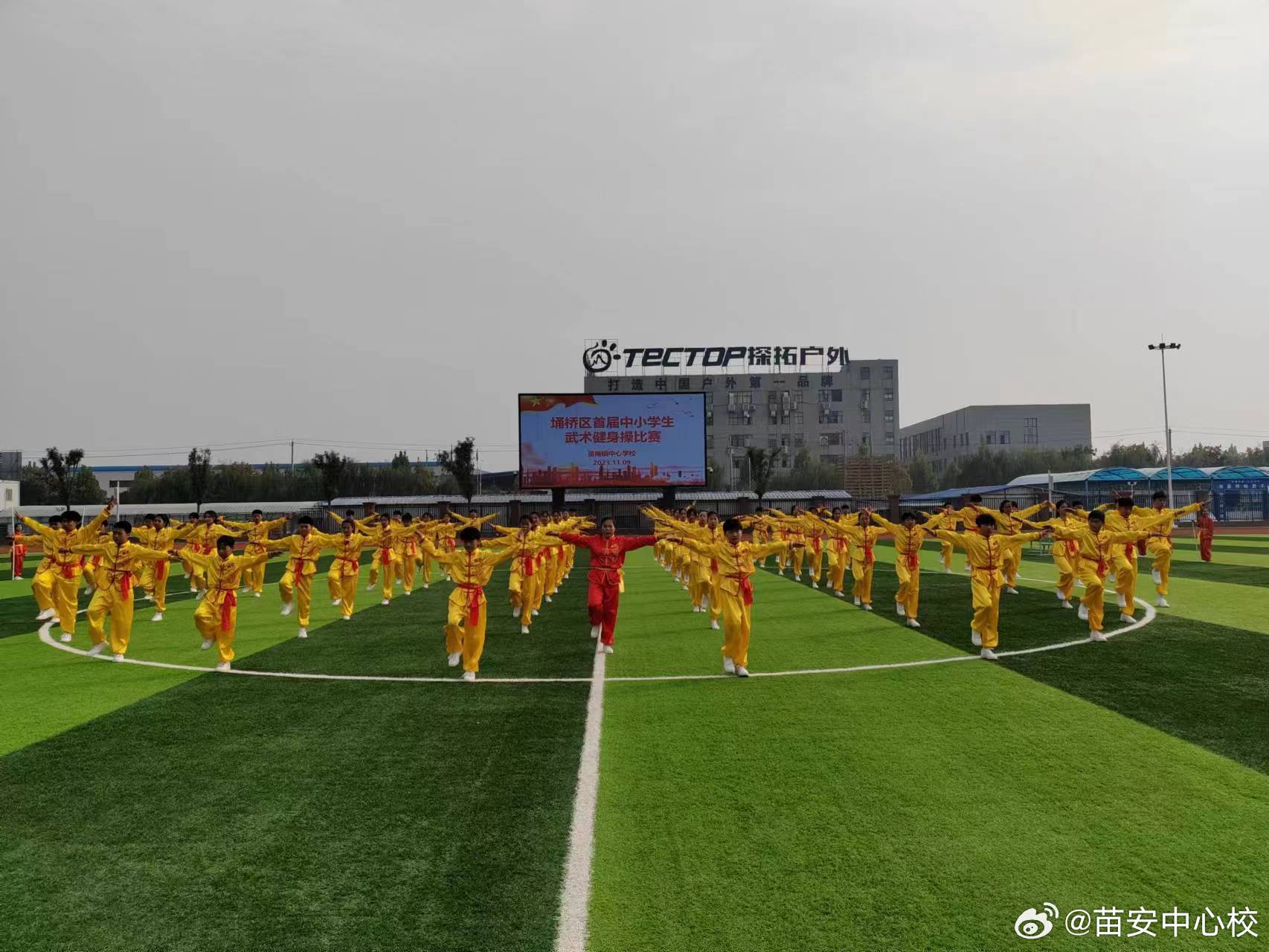 为弘扬中华传统武术文化,提高大课间活动的质量,促进学校体育工作的发展,11月9日上午,苗庵镇中心校举行武术操比赛活动。在武术操比赛中,同学们个个精神抖擞、激情飞扬,动作整齐划一,嘹亮的口号响彻学校上空,充分展示了同学们阳光健康,积极向上的精神面貌。本次活动的开展,不仅丰富了校园文化生活,增强了学生体质,切实提高了学生课间操的质量,更培养了学生”以武树德、以武明智、以武健体”的理念,进而弘扬中华民族传统文化,为学生身心健康的发展奠定良好的基础!
