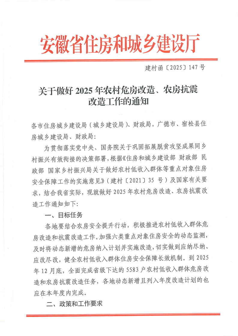 【文件政策】关于做好2025年农村危房改造、农房抗震改造工作的通知