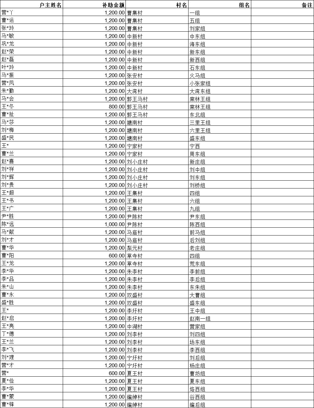 【分配结果】苗庵镇七月村级扶贫小组长基本报酬清册表