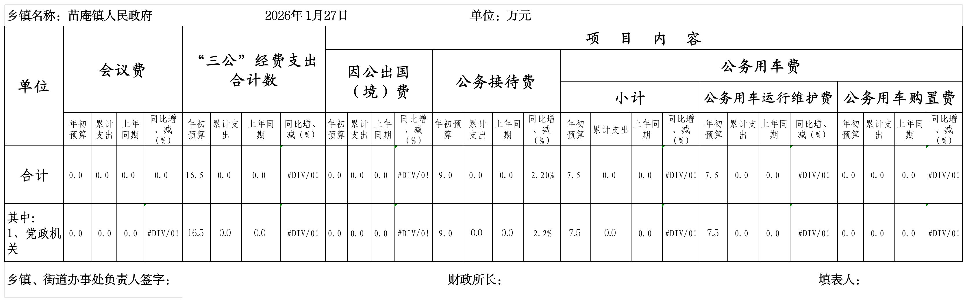 苗庵镇2026年1月“三公”经费支出情况统计表