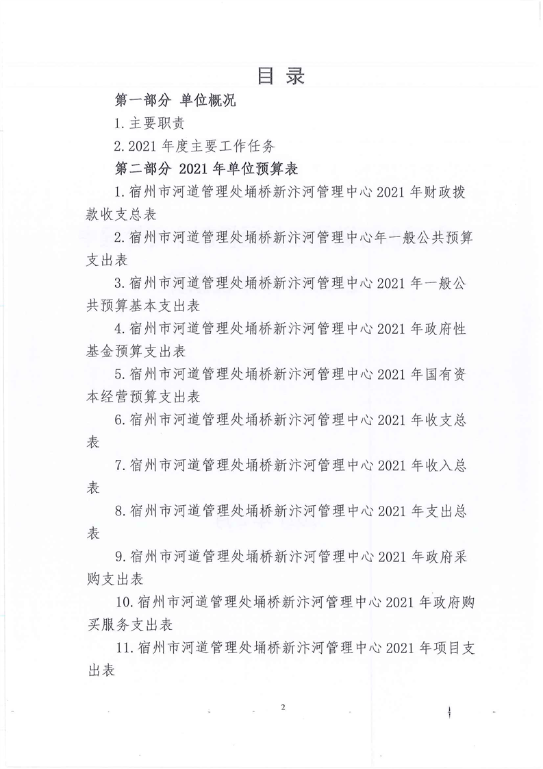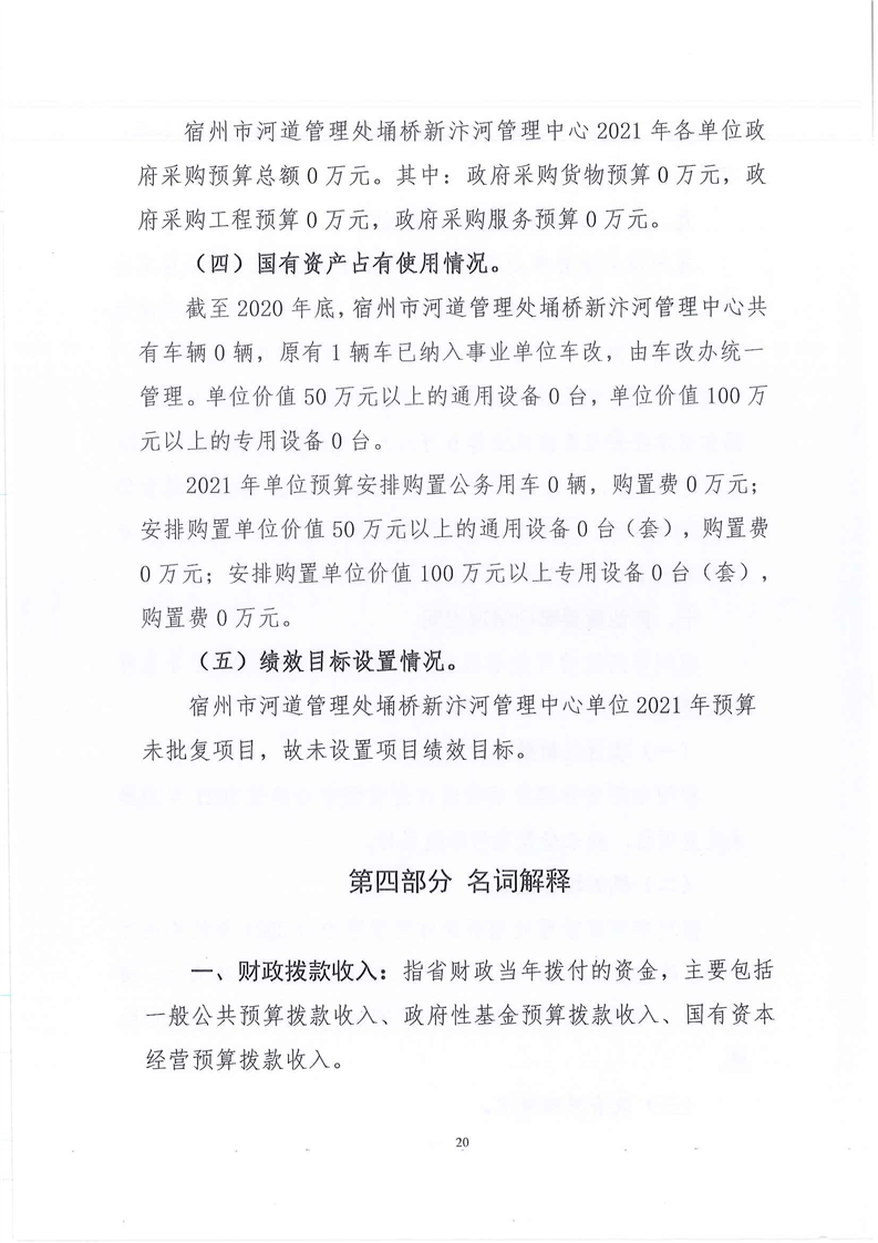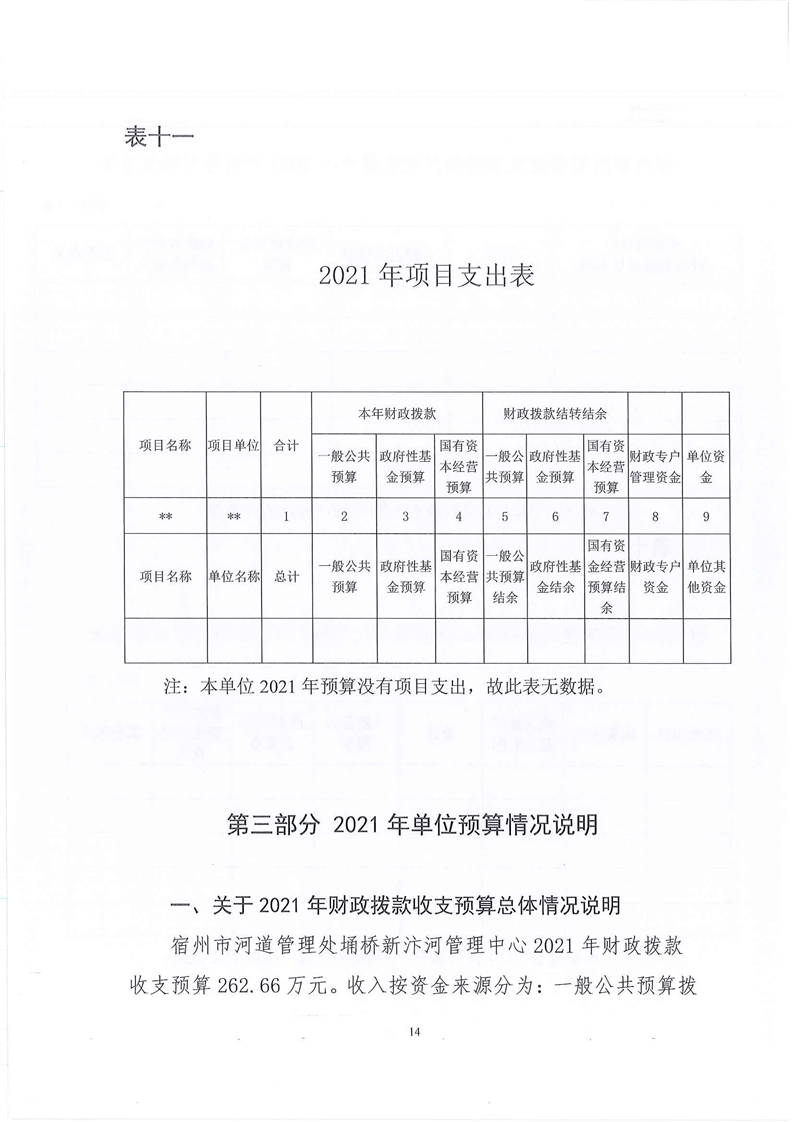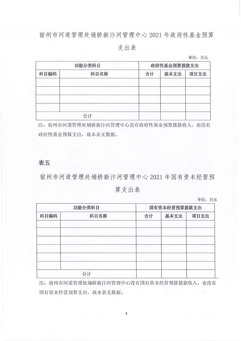 2021年宿州市河道管理处埇桥新汴河管理中心单位预算报表及说明
