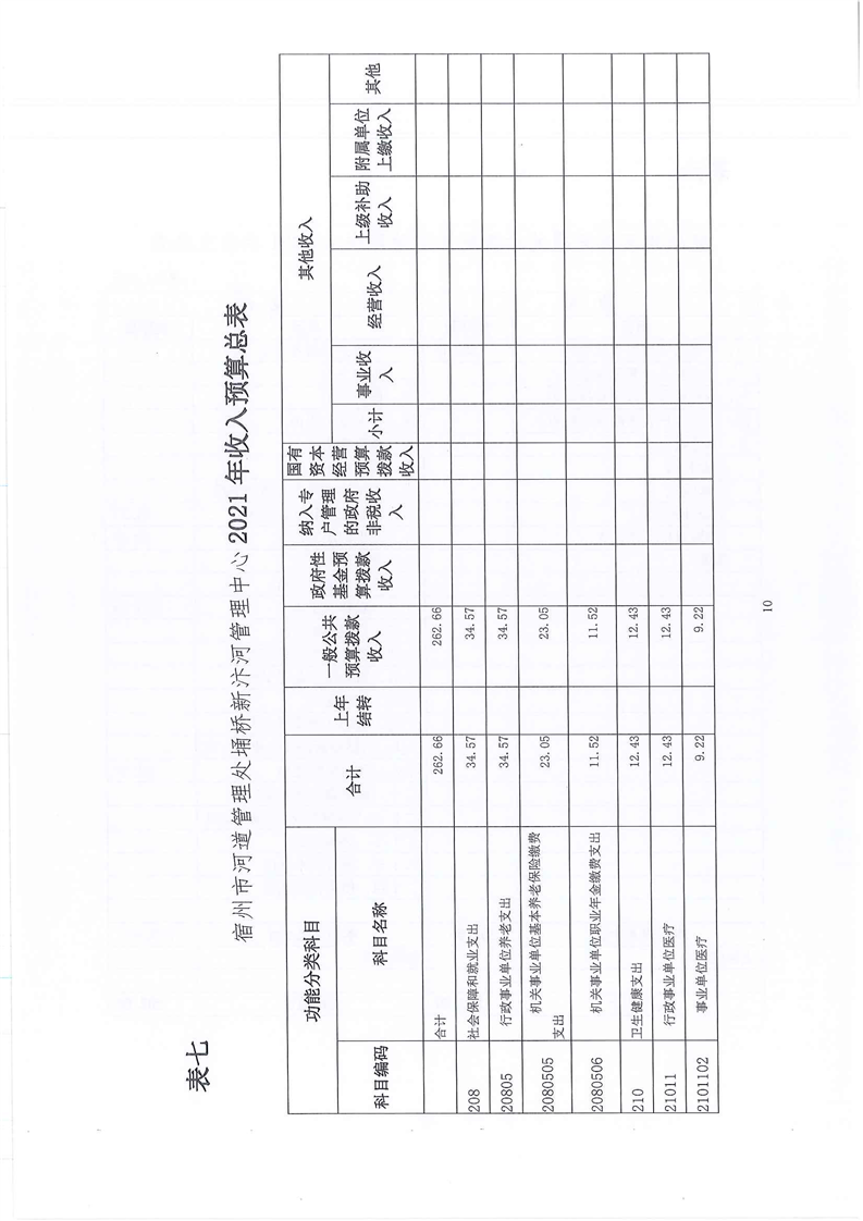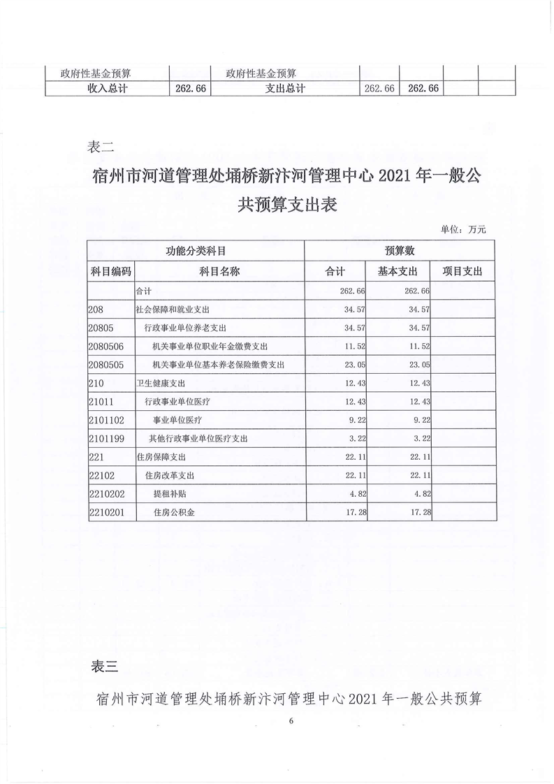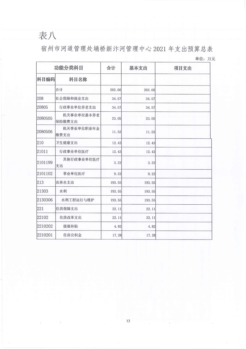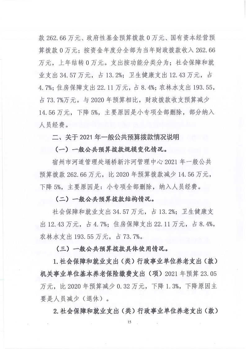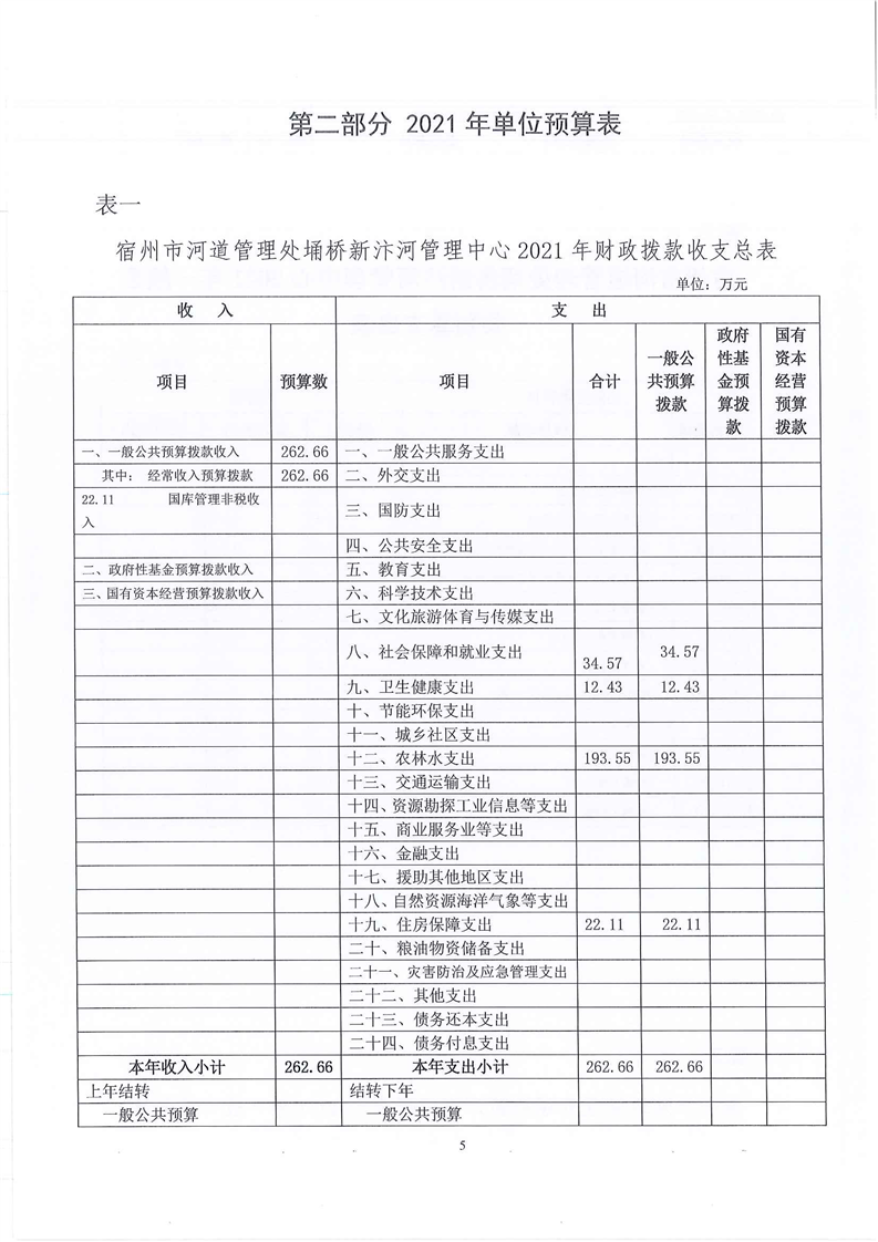2021年宿州市河道管理处埇桥新汴河管理中心单位预算报表及说明