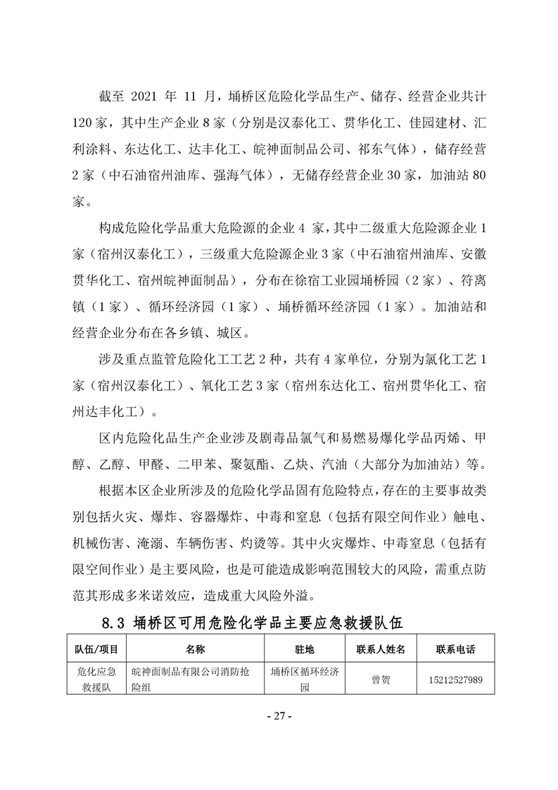 【危险化学品】宿州市埇桥区危险化学品生产安全事故应急预案