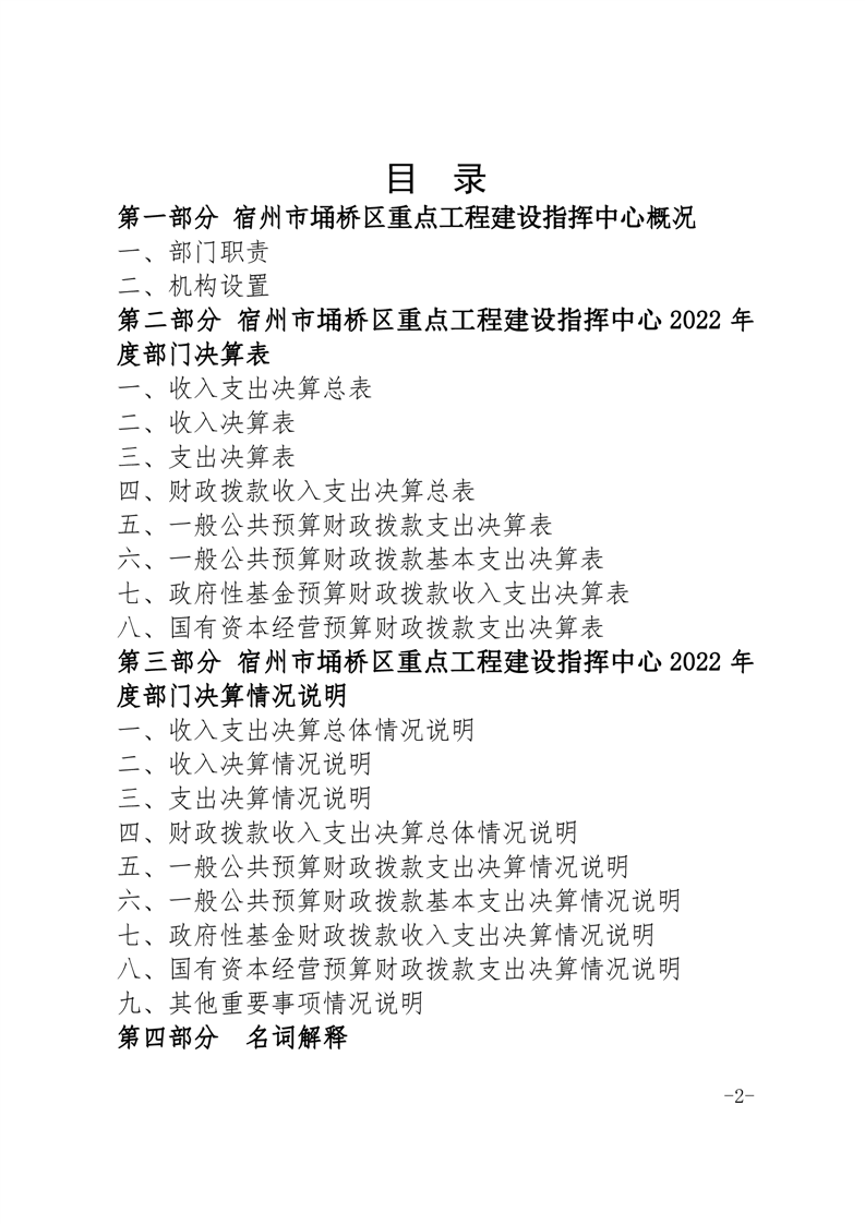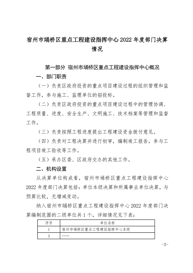 | 名称: | 宿州市埇桥区重点工程建设指挥中心2022年度部门决算 | ||