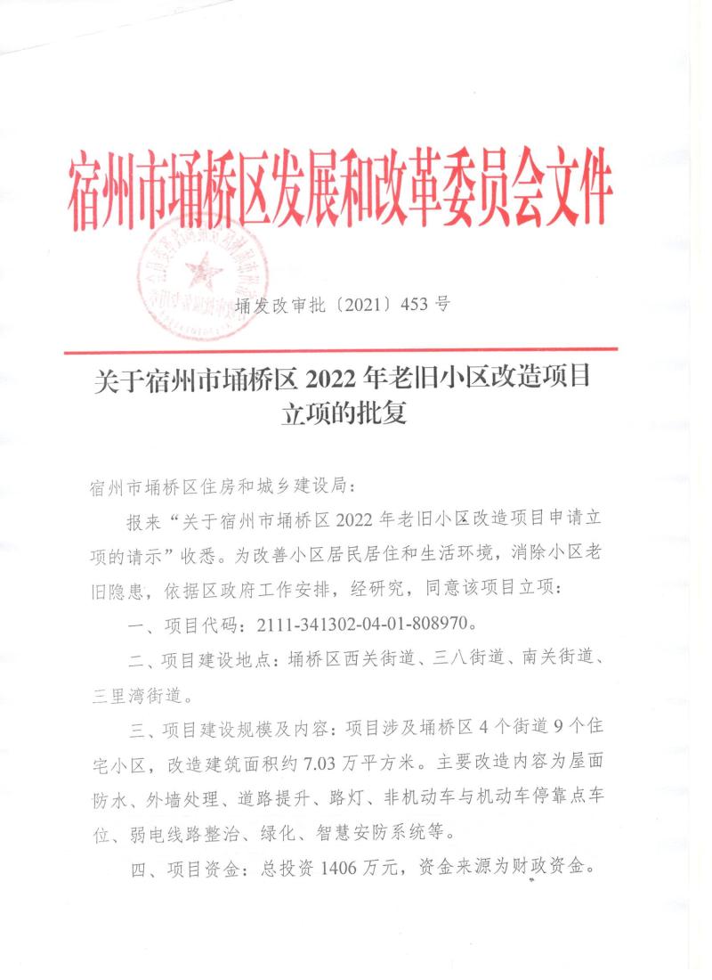 关于埇桥区2022年老旧小区改造项目立项的批复