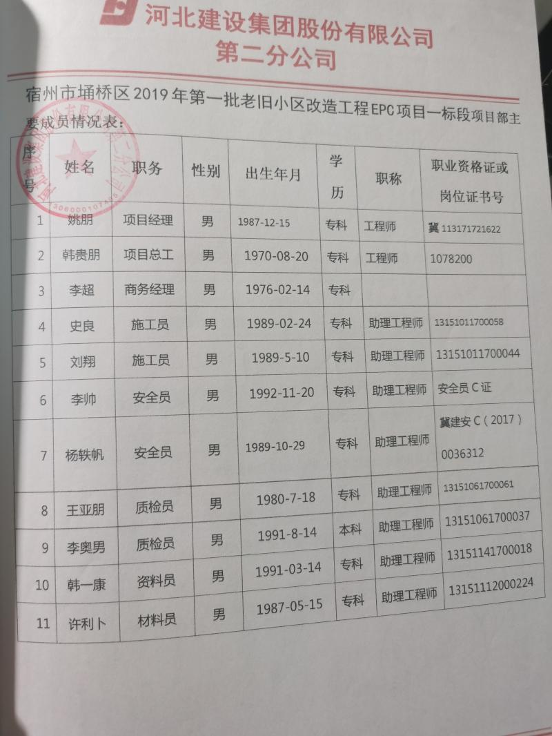 项目负责人及资质:姚朋 一级建造师