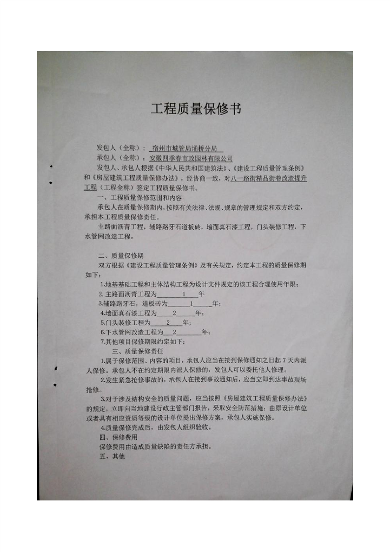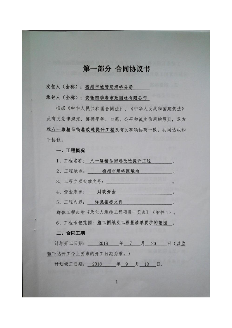 八一路精品街巷改造提升工程合同