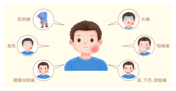 腮腺炎主要表现为一侧或两侧耳垂根部肿大,肿大的腮腺常呈半球形,以耳垂为中心呈弥漫性肿胀,并有明显的压痛。在咀嚼或进食酸性食物时,疼痛加重。腮腺炎患者除了腮腺部位肿痛外,大部分患者还有发热症状,体温在38℃左右,间断性。如果没有并发症,一周左右可自愈。